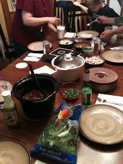 So it was a best-of meal, each of us providing one of our favorite taco recipes from the month. Josh and Aleisha were nice enough to make ours for us, since it required a crock pot and we couldn't quite manage that while we traveled.